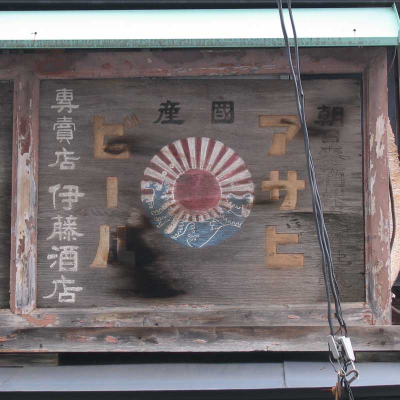 朝日麥酒株式會社ということで、昭和20年代から30年代初めごろの看板でしょう。1枚目の方が古いようです。