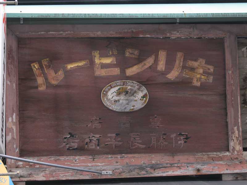 建物は改装されていますが、看板は古いままのようです。木製の切り抜き文字の一部が割れてきました。